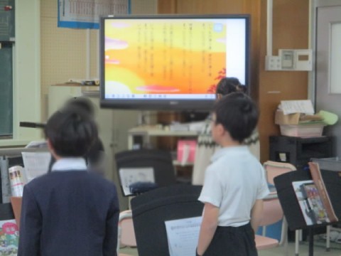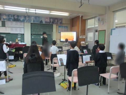 先生の歌のお手本を参考に、曲の山を考え練習しました。曲の山の部分は、声を大きくして歌いました。