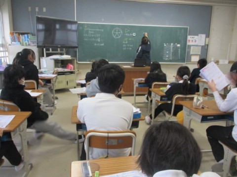 多角形の内角や円周について問題を解いていました。