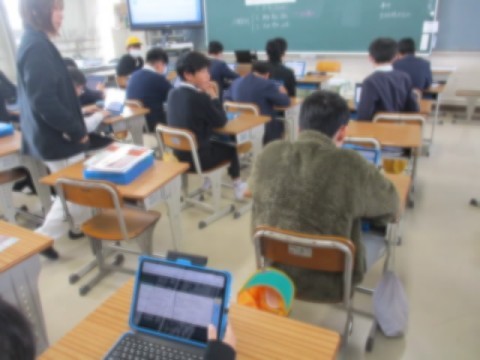 差別についての、クラスのいろんな意見をタブレットで確認していました。