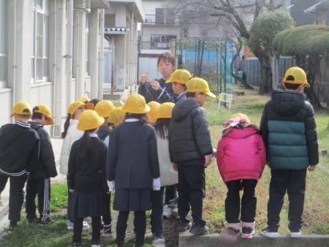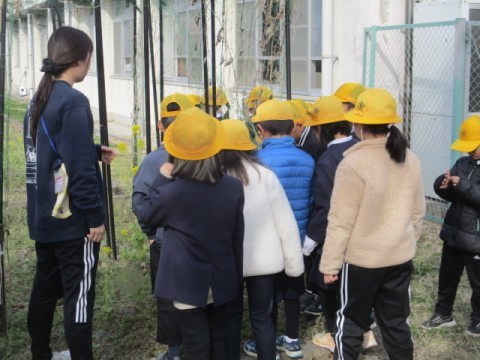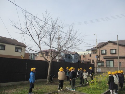 学校の敷地内で、春の植物を探しました。