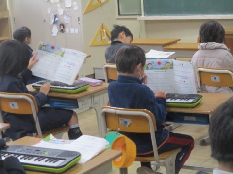 キーボードの練習をしながら、歌詞を確認しながらみんなで歌っていました。