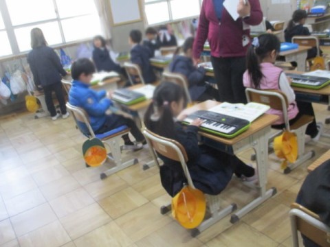 となりの席のお友だちや先生に、きちんと弾けているかどうか確認していただきました。