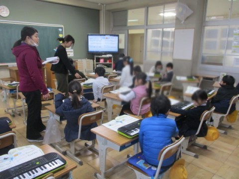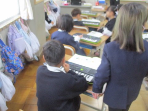 キーボードで「こいぬのマーチ」を練習しました。