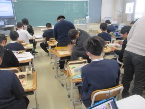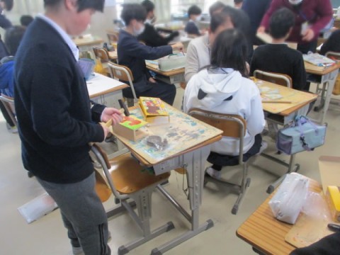 木板を使ったテープカッター作りの仕上げに取り組んでいました。