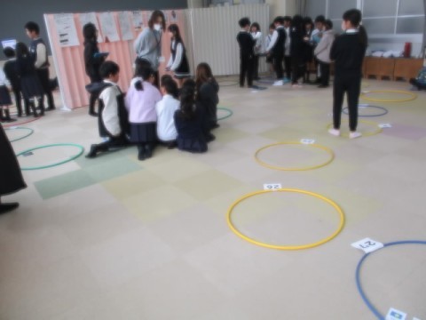 1年生、2年生がすごろくに参加し、サイコロを振って止まったマスのクイズにチャレンジします。