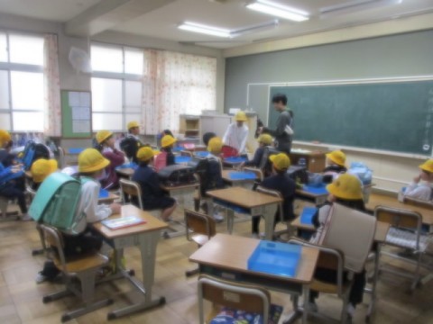 地区別の班に分かれて、先生と一緒に下校しました。