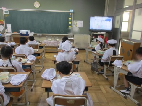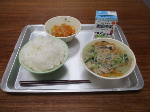 今日の給食のメニューは、ごはん、はるさめスープ、とりのからあげやさいあんかけ、ぎゅうにゅう でした。