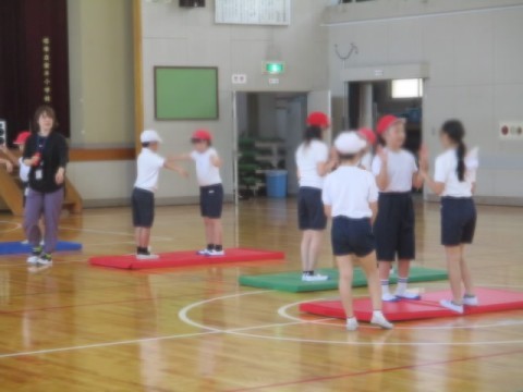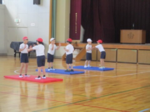 マットを使って、体を動かしていました。