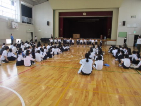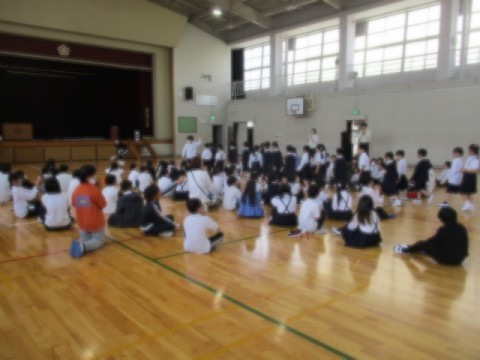 今日は朝の時間に、体育館で新1年生との対面式と学年代表、委員会の認証式がありました。