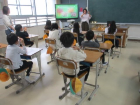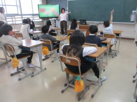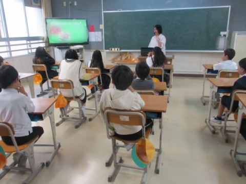 自分の好きな食べ物などを、英語で紹介する練習をしていました。