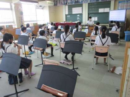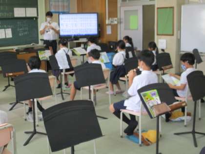エーデルワイスをリコーダーで演奏しました。とても美しい音色でした。そのあと,高い音を出すために,サミングについて音楽の先生から教えてもらい,親指の使い方を練習していました。美しい音色が出せるようになるといいですね。