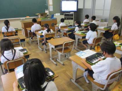 2年生 音楽 公開日 2022/09/05 更新日 2022/09/05 2年生 「ぷっかり くじら」という曲に取り組みました。はじめは曲に合わせて歌う子とキーボードを演奏する子に分かれて取り組んでいましたが,どんどんレベルが上がって,自分で歌いながら,キーボードを演奏することにチャレンジしていました。