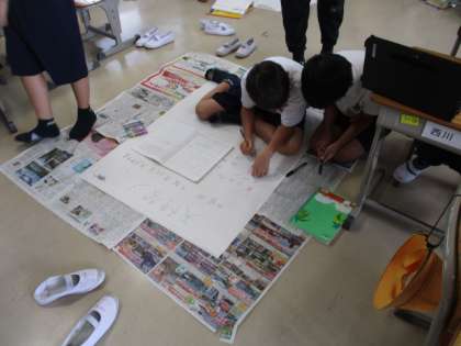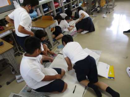 大阪府のことについて調べたことを,グループごとにまとめています。このまとめたものを使って,発表もします。どんな発表になるか楽しみです。
