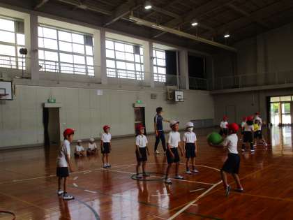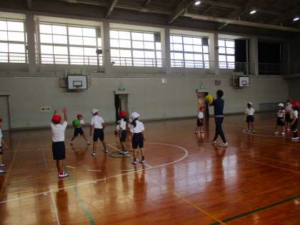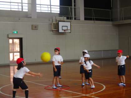 2年生 体育 公開日 2022/09/07 更新日 2022/09/07 2年生 体育では「サークル・シュートゲーム」の学習を進めていました。サイクルの真ん中にいる味方にボールをパスして得点を競うゲームです。オフェンスとディフェンスに分かれてそれぞれのチームが作戦をたてて,考えていきます。今日は初めて行うので,ゲームの内容を知って,初めのゲームで楽しんでいました。