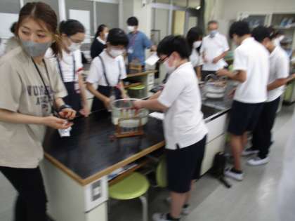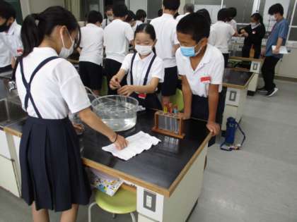 6年生 理科 公開日 2022/09/09 更新日 2022/09/09 6年生 今日は水溶液の性質を調べる実験をしました。グループごとに実験の方法を確認しながら取り組み,水溶液の性質について学ぶことができたようです。