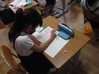 今日は三角形と四角形について学習しました。大切なことをノートに整理し,そのあと各自で練習問題に取り組みました。
