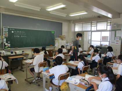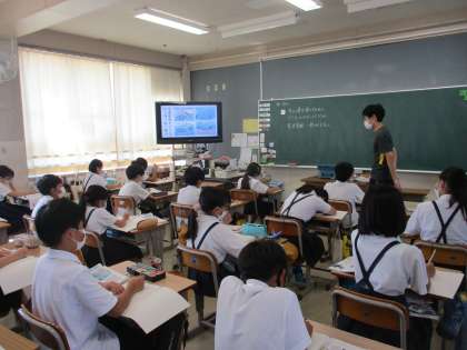 5年生 社会科 公開日 2022/09/12 更新日 2022/09/12 5年生 社会科では「これからの食料生産」の学習を進めていました。今日は「漁獲量を増やすためにできることはないだろうか?」をめあてにしていました。一度に大量に魚を捕るとどうなんるのかを考えて,目先の利益にとらわれることなく資源を大切にすることも考えることが大切であることを学んでいました。自然の恵みを大切にすることを世界中の人々も同じ考えを持つことが大切ですね。