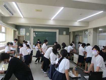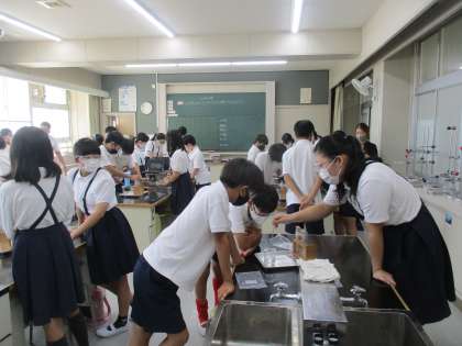 理科では「水溶液の仲間分け」の学習を進めていました。今日はリトマス紙を使って,その変色具合から,水溶液を酸性・中性・アルカリ性に分けていました。洗剤や漂白剤などに明記されているので,関心を持って表示を見るようにしてくれればと思います。