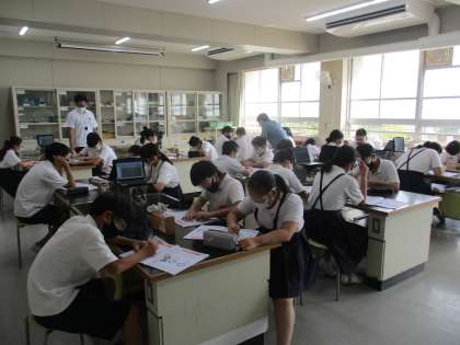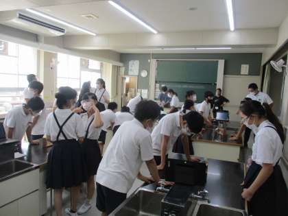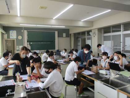 6年生 理科 公開日 2022/09/14 更新日 2022/09/14 6年生 理科では「塩酸を含む水溶液が金属製品では使えないのはなぜだろうか?」をめあてにして学習を進めていました。今日は,薄い塩酸にアルミニウム箔や鉄(スチールウール)を入れるとどのような変化が起こるかを実験で確かめていました。塩酸の性質を実験で確かめて,問題に対しての答えを考察していました。