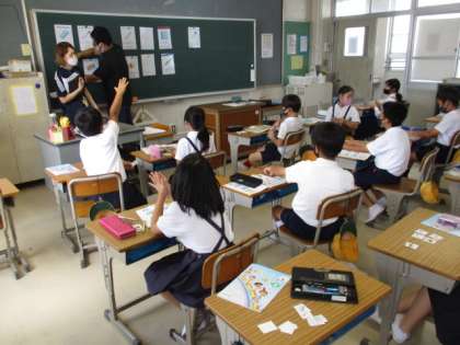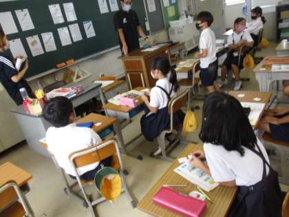 4年生 外国語 公開日 2022/09/15 更新日 2022/09/15 4年生 先生が選んだカードを当てるゲームをしていました。そのときに「Do you have〜?」を使って先生に尋ねていました。とても楽しそうに活動していました。