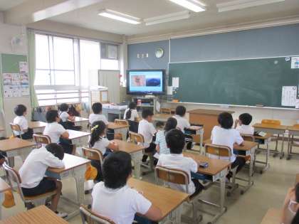 3年生 理科 公開日 2022/09/21 更新日 2022/09/21 3年生 理科では「いろいろなかげをくらべよう」の学習を進めていました。デジタル教材をみて,人の影や富士山,ヘリコプターの影など影の大きさや濃さなどを気が付きますね。影と太陽の位置関係も気が付いてくれればと思います。
