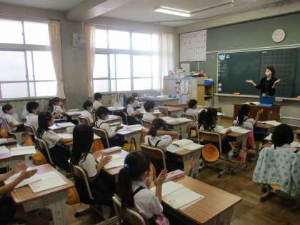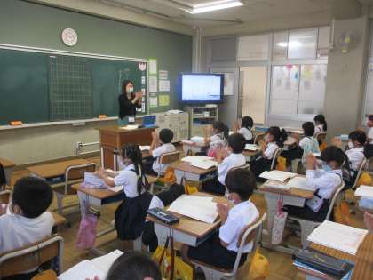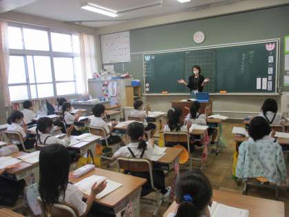 国語では言葉遊びで「かずとかんじ」の学習を進めていました。一から十までの言葉が入ったリズミカルな詩を手拍子を打ちながら読んでいました。四や九などの読み方が特別ですね。しっかりと覚えてほしいと思います。