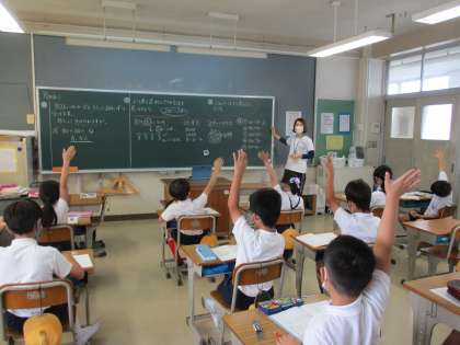 4年生 算数 公開日 2022/09/28 更新日 2022/09/28 4年生 算数では「わり算」の学習を進めていました。今日は「より速く,正確にできる方法を見つけよう」をめあてにして計算方法を考えていました。80÷20や60÷30など一の位が0の時の計算を工夫して考えていました。できるだけ計算は簡単な数字を使えば計算ミスがなくなりますね。