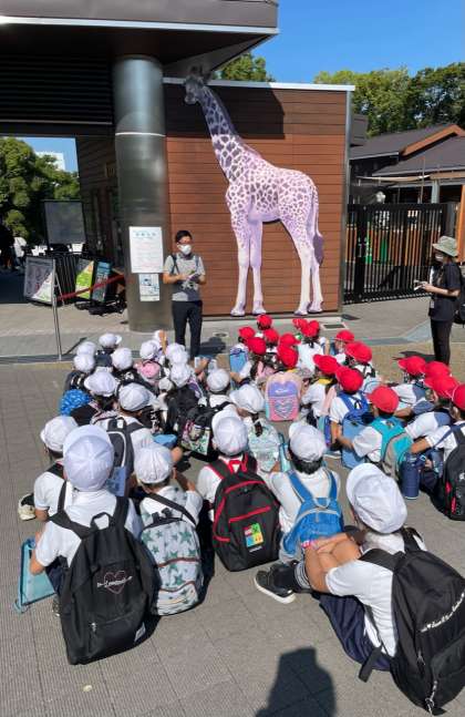 ?天王寺動物園に到着しました!最高の青空の下で、みんな元気に入場します!