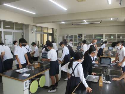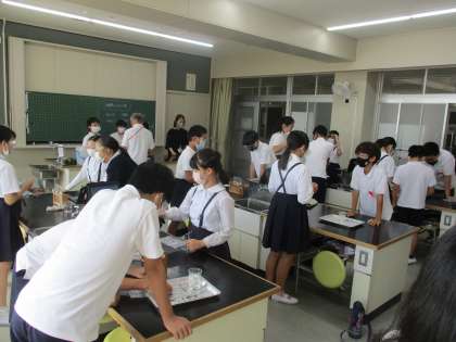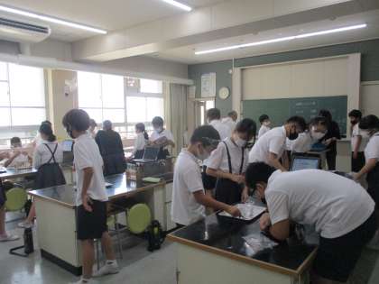6年生 理科 公開日 2022/09/30 更新日 2022/09/30 6年生 理科では「水溶液の種類分け」の学習を進めていました。今日は理科室でグループごとに実験方法を考え,計画を練って進めていました。必要な用具や器具を今までの経験から考えて主体的に学習に取り組んでいました。