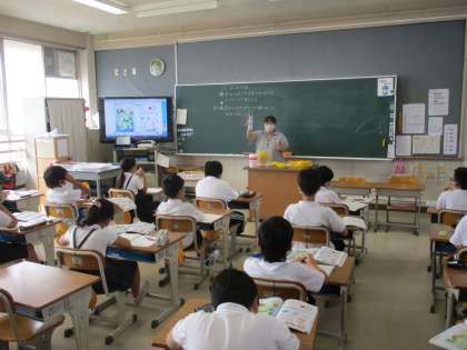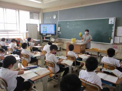 3年生 算数 公開日 2022/10/03 更新日 2022/10/03 3年生 算数では「ボールの形」の学習を進めていました。今日は立体の「球」を習いました。円の「丸い」イメージと球の「丸い」イメージの違いを明確にして,平面と立体の違いについて整理していました。