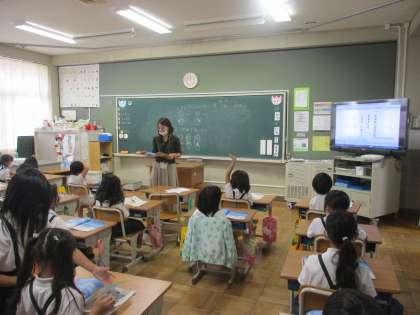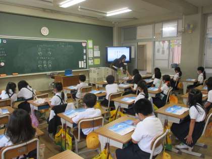 音楽では「海」の学習を進めていました。挿絵のきれいな海をイメージしながら。広い海の様子を歌って表現していました。