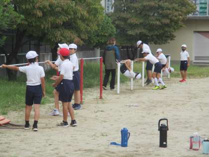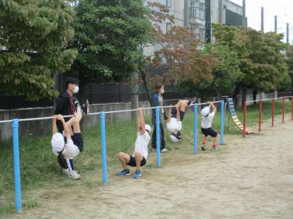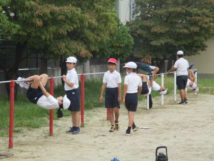 4年生 体育 公開日 2022/10/05 更新日 2022/10/05 4年生 体育では「鉄棒運動」に取り組んでいました。最初に鉄棒を使ったゲームを行い体をほぐした後,自分のできる技を確かめたり技のスキルアップを進めたりしていました。休み時間も鉄棒に親しんで練習してほしいですね。