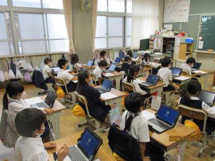 1年生 タブレット学習 公開日 2022/10/07 更新日 2022/10/07 1年生 タブレットの使い方について学んでいました。 初めて使うので,まずはログインの方法から学習していました。 初めて使うタブレットに苦戦しながらも,何とかログインすることができていました。 これからも,使い方をしっかりと学んで,学習に活用していきましょう。