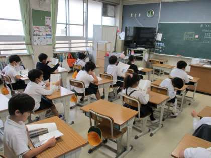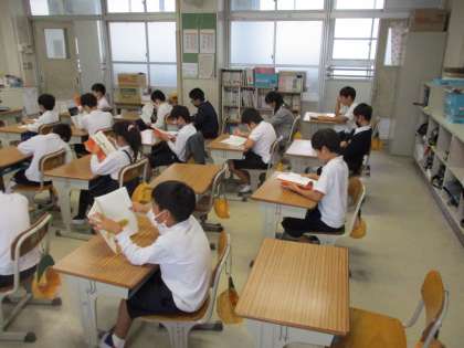 3年生 読書 公開日 2022/10/07 更新日 2022/10/07 3年生 読書の時間に,国語の教科書を読み込んでいました。 みんな集中して文章を読むことができています。 文章を何度も読むことで,お話への理解も深まります。 がんばりましょう。