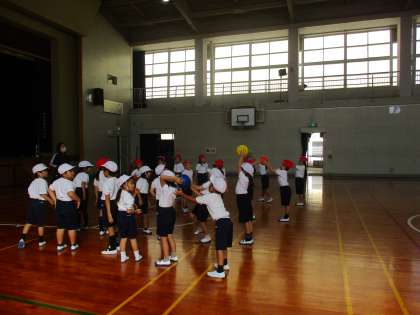 1年生 体育 公開日 2022/10/11 更新日 2022/10/11 1年生 体育ではボールを使ったゲームを行っていました。今日は,ボール送りゲームで楽しんでいました。どのように送れば早く次の人に渡せるかを考え,作戦を自分なりに立てて勝負を競っていました。