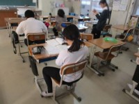 4年生 書写 公開日 2022/10/12 更新日 2022/10/12 4年生 書写では「土地」を課題にして毛筆で書いていました。「左右の組み立てを考えて書こう」をめあてにして,バランスを考えながら一生懸命取り組んでいました。