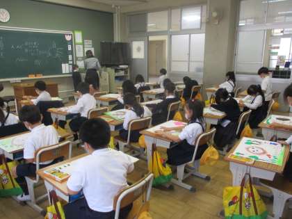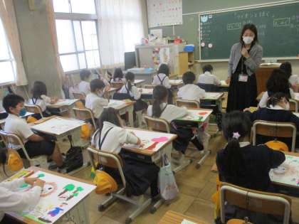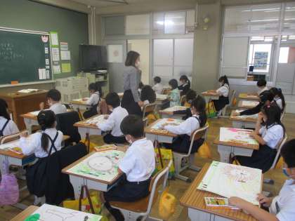 図工では絵本の「ライオンとぼく」をテーマにして一番描きたい場面を描いていました。みんな,いろいろな表情のライオンを描いて,心が温まりました。自分の思いをしっかりと画用紙に描いてほしいと思います。
