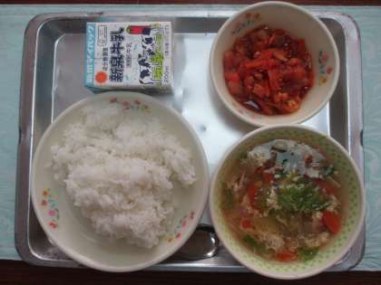 今日の給食は「レタスと卵のスープ,セルフチキンライス」でした。レタスは,ほとんどが水分ですが,シャキ シャキとした歯ごたえと,きれいな緑色がおいしそうですね。サラダにして食べることが多いですが,今日のようにスープにしてもおいしいです
