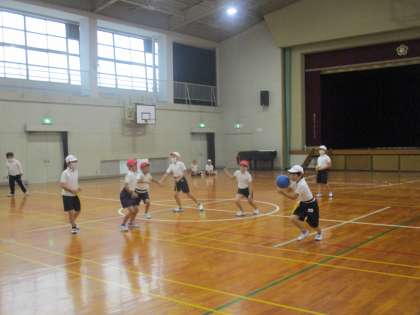 3年生 体育 公開日 2022/10/17 更新日 2022/10/17 3年生 体育では「ラインポートボール」を進めていました。パスを回してゴールマンにシュートをします。動きを見ながら味方にパスを通して,得点が入るたびにうれしそうな表情を見せていました。