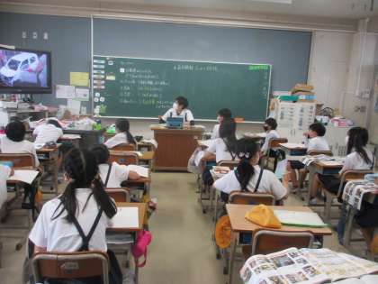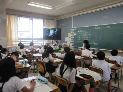 5年生 社会科 公開日 2022/10/17 更新日 2022/10/17 5年生 社会科では「工業生産と私たちのくらし」の学習を進めていました。今日は「自動車工業」に学んでいました。デジタル教材で自動車ができるまでの工程を視聴し,自動車ができるまでの流れをまとめていました。生産ラインの様子を見て,工業用ロボットと人の仕事をどう振り分けているか考えていました。