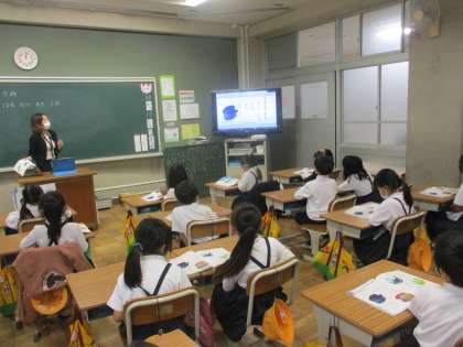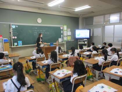 音楽では教科書の「はる なつ あき ふゆ」を歌っていました。それぞれの季節を表す歌詞と様子を表す言葉に気を付けて,気持ちを込めて歌っていました。
