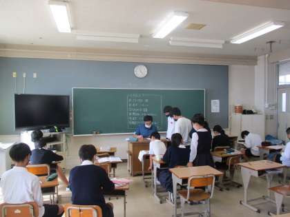 算数では「拡大と縮小」の学習を進めていました。今日は復習プリントに取り組んでいました。比を使ったり作図したりして問題に取り組んでいました。計算をして答えを出すことが多くなるので,計算ミスをしないよう丁寧に進めてほしいと思います。