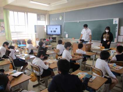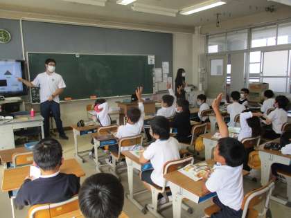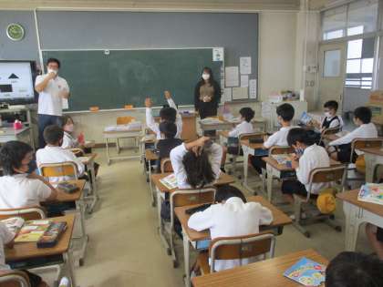 3年生 外国語活動 公開日 2022/10/20 更新日 2022/10/20 3年生 外国語活動では「ものの形」の英語での表し方を学んでいました。三角形や四角形で表されたものシルエットクイズを行い,ゲーム感覚で英語での表現に慣れていました。いろいろな形の表し方に興味を持って,調べ学習を進めてくれればと思います。