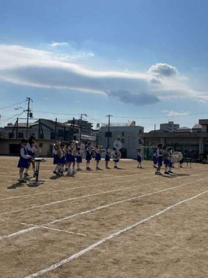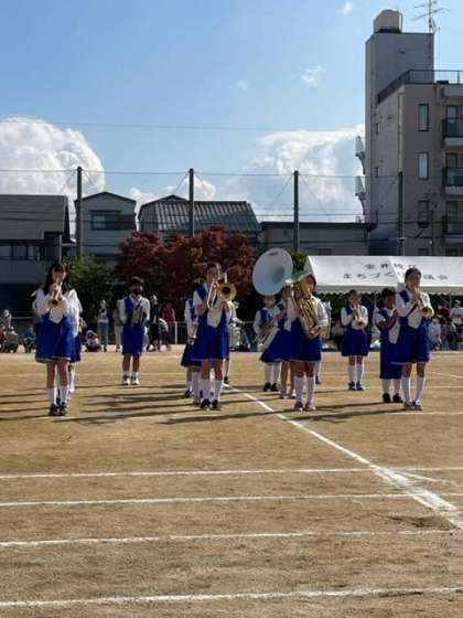 澄み切った青空の下で、音楽隊の子どもたちがマーチングを披露しました。練習の成果を発揮し、素晴らしい演奏でした。