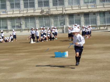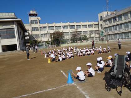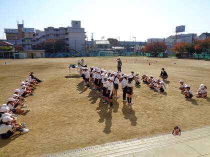 学校の紹介や学校〇×クイズ,ひも結びリレーなどをしました。3校の1年生みんなで,楽しく過ごしました。