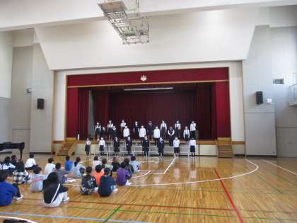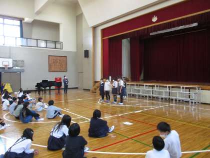3校交流会 5年生 公開日 2022/11/11 更新日 2022/11/11 5年生 11日(金)午後に,少林寺小学校で3校(大仙西・少林寺・安井)交流会を行いました。5年生は「音楽会」を中心に実施しました。まず,小学校の紹介をし合い,合唱を披露しました。どの学校も透き通るような歌声でした。 そして,ゲームを行いながら自己紹介もしました。違う学校の人の名前も覚えられて,嬉しそうでした。