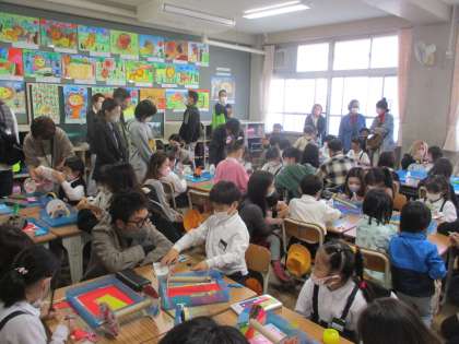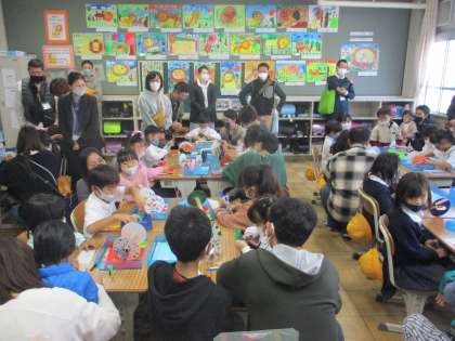 1年生 土曜参観 図工 公開日 2022/11/12 更新日 2022/11/12 1年生 授業参観では図工で「かみざらコロコロ」の制作を進めていました。今日は保護者の方と一緒に制作をすすめて,自分の思いを表現していました。いろいろと創意工夫にとんだ作品ができていました。
