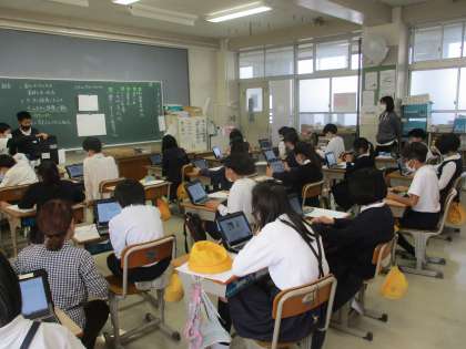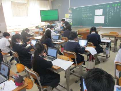 5年生 総合的な学習の時間 公開日 2022/11/17 更新日 2022/11/17 5年生 総合の時間では「食料について調べよう」の学習を進めていました。食料問題を取り上げて「フードロス,食糧危機,日本食,江戸時代の食料事情」から課題を選んで,タブレットで調べてまとめていました。最近のニュースで世界の人口が80億人を突破したことが報じられていました。異常気象とも合わせて,食料問題は喫緊の課題になりますね。当たり前の生活ができるように,今から考えておく必要があることを学んでほしいですね。