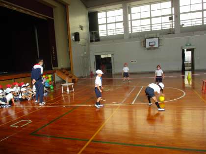 2年生 体育 公開日 2022/12/02 更新日 2022/12/02 2年生 体育では「コロコロバレーボール」に取り組んでいました。ボール打って転がし,相手陣地のラインを超えれば得点となるゲームです。守りの隙間を見つけて転がして得点になったときは大歓声でした。相手の動きや隙間を見つけることが大切ですね。