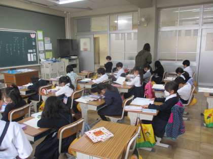 1年生 国語 公開日 2022/12/02 更新日 2022/12/02 1年生 国語では「おなべのおかゆ」の学習を進めていました。今日は感想とその場面を想像して挿絵を描いていました。お話を読んで想像を膨らませ,いろいろな感想を持つことで,心も豊かになりますね。グリム童話だけでなく都の外国の童話を読んで幅広い作品に触れてほしいですね。